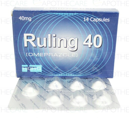 Product Name: Ruling Cap 40mg 14 'sProduct Form: CapsulesPack Size: 14'sMarketed By: High Q PHARMACEUTICALSGeneric Category: Anti-UlcerantIngredients: Omeprazole
