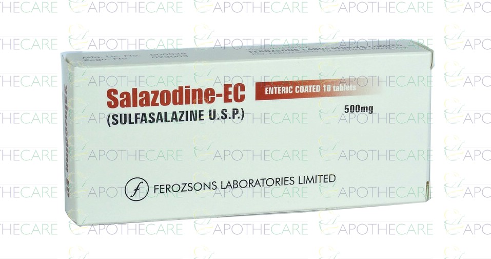 Product Name: Salazodine EC Tab 500mg 10'sProduct Form: TabletsPack Size: 10'sMarketed By: FEROZSONS LABORATORIES LTDGeneric Category: Anti-InflammatoryIngredients: Sulfasalazine