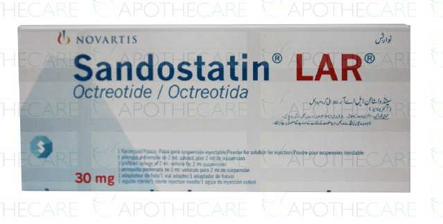 Product Name: Sandostatin LAR Inj 30mg 1VialProduct Form: InjectionPack Size: 1VialMarketed By: NOVARTIS PHARMA PAKISTAN LTDGeneric Category: Hormonal ProductsIngredients: Octreotide Acetate