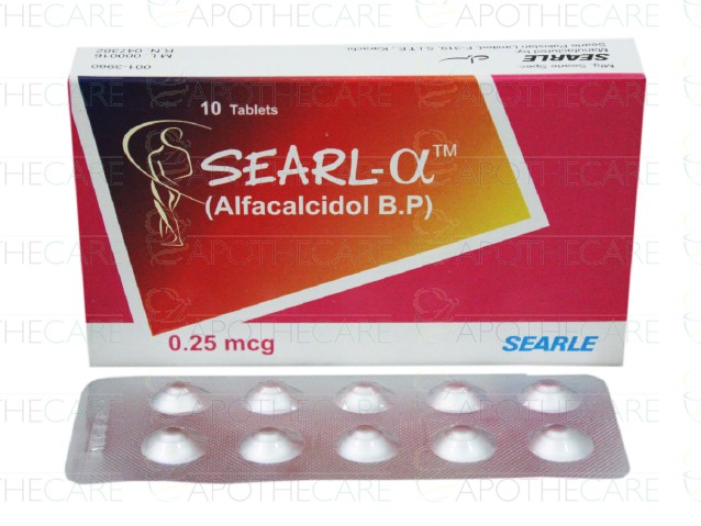 Product Name: Searl-Alpha Tab 0.25mcg 10'sProduct Form: TabletsPack Size: 10'sMarketed By: SEARLE PAKISTAN Generic Category: VITAMIN D ANALOGUEIngredients: Alfacalcidol
