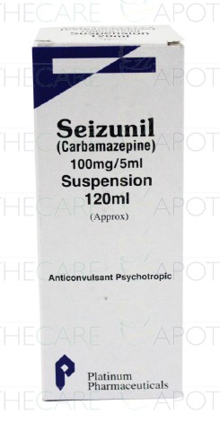 Product Name: Seizunil Susp 100mg/5ml 120mlProduct Form: SuspensionPack Size: 120mlMarketed By: Platinum Pharmaceuticals (Pvt) LtdGeneric Category: Anti-EpilepticIngredients: Carbamazepine