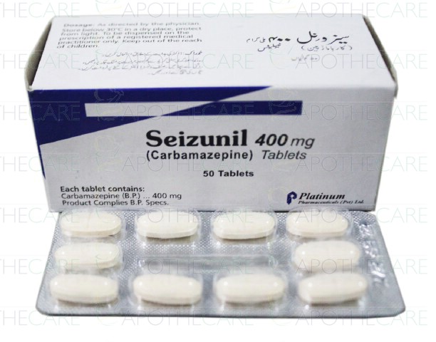 Product Name: Seizunil Tab 400mg 5x10'sProduct Form: TabletPack Size: 5x10'sMarketed By: Platinum Pharmaceuticals (Pvt) LtdGeneric Category: Anti-EpilepticIngredients: Carbamazepine