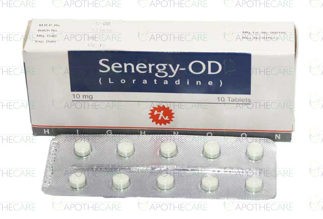 Product Name: SENERGY-OD Tab 10mg 10'sProduct Form: TabletPack Size: 10'sMarketed By: HIGHNOON LABORATORIES LTD.Generic Category: Anti-HistamineIngredients: LORATADINE