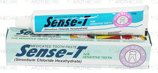 Product Name: Sense-T Tooth paste 100gmProduct Form: Tooth pastePack Size: 100mgMarketed By: Platinum Pharmaceuticals (Pvt) LtdGeneric Category: Oral HygieneIngredients: Strontium Chloride 10%