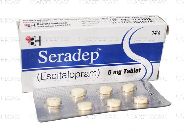 Product Name: Seradep Tab 5mg 14'sProduct Form: TabletsPack Size: 14'sMarketed By: BARRETT HODGSON PAKISTAN (PVT) LTDGeneric Category: Anti-DepressantIngredients: Escitalopram