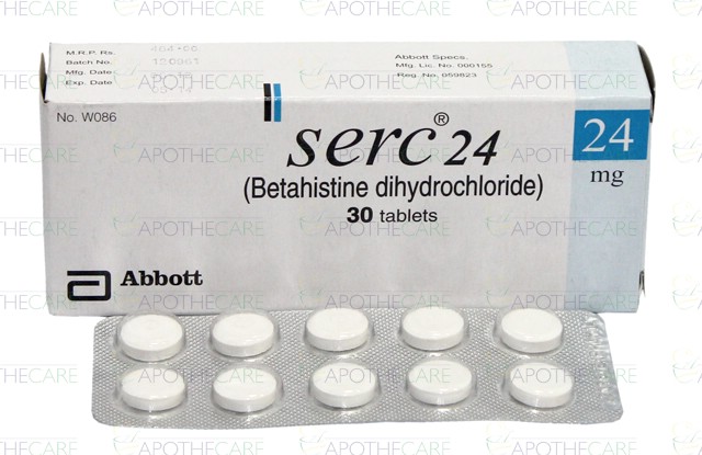 Product Name: Serc 24 Tab 24mg 30'sProduct Form: TabletsPack Size: 30'sMarketed By: ABBOTT LABORATORIES (PAKISTAN) LTDGeneric Category: Anti-vertigoIngredients: Betahistine Dihydrochloride