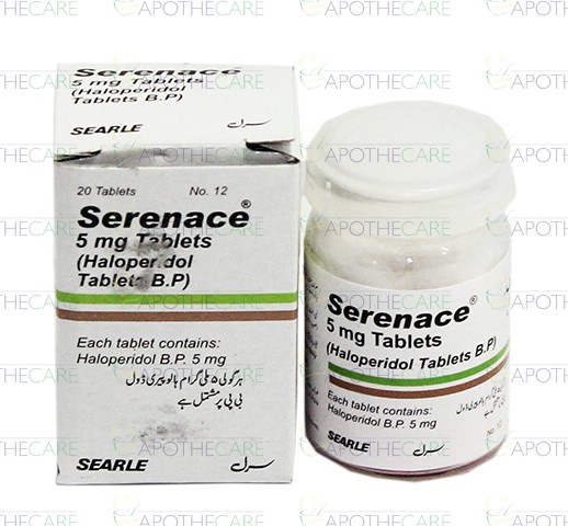 Product Name: SERENACE Tab 5mg 100'sProduct Form: TabletsPack Size: 100'sMarketed By: SEARLE PAKISTAN Generic Category: PSYCHOSISIngredients: Haloperidol