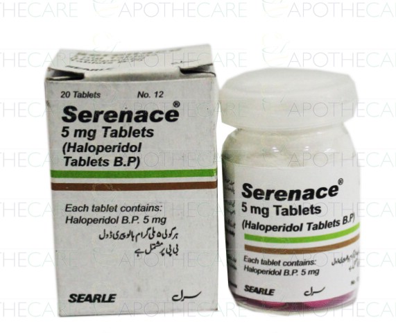 Product Name: Serenace Tab 5mg 20'sProduct Form: TabletsPack Size: 20'sMarketed By: Searle Pakistan LimitedGeneric Category: PsychosisIngredients: Haloperidol