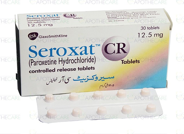 Product Name: Seroxat CR Tab 12.5mg 30'sProduct Form: TabletsPack Size: 30'sMarketed By: Glaxosmithkline Pakistan LimitedGeneric Category: Anti-DepressantIngredients: Paroxetine