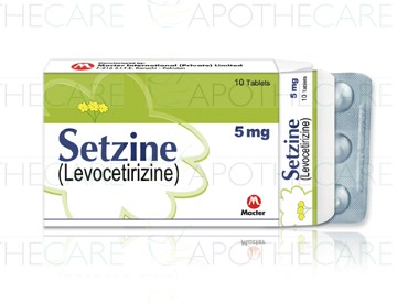 Product Name: SETZINE Tab 5mg 10'sProduct Form: TabletPack Size: 10'sMarketed By: MACTER INTERNATIONAL (PVT) LTD Generic Category: ANTI-HISTAMINEIngredients: Levociterizine Dihydrochloride