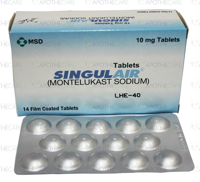 Product Name: Singulair Tab 10mg 14'sProduct Form: TabletsPack Size: 14'sMarketed By: OBS PharmaGeneric Category: Anti-Leukotriene Ingredients: Montelukast Sodium