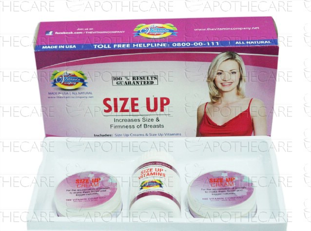 Product Name: Size Up Cream & Tab Package 1'sProduct Form: Cream & TabletsPack Size: 1'sMarketed By: The Vitamin company