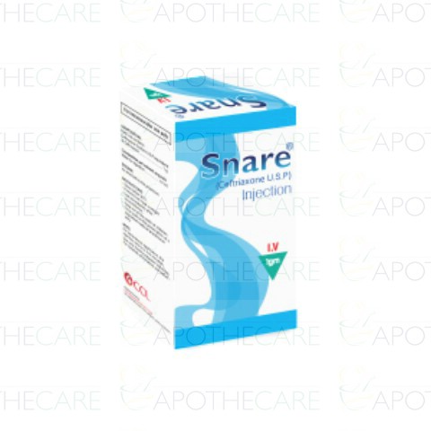 Product Name: Snare IV Inj 1g 1VialProduct Form: InjectionPack Size: 1VialMarketed By: CCL PharmaceuticalsGeneric Category: Cephalosporin AntibioticIngredients: Ceftriaxone