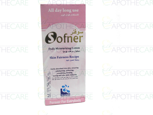 Product Name: Sofner Lotion 60mlProduct Form: LotionPack Size: 60mlMarketed By: PHARMA HEALTH PAKISTAN (PVT.) LTDGeneric Category: Skin care preparationIngredients: Cetyl Stearyl Alcohol, Polyoxythylene alkyl ethers,Glycerine