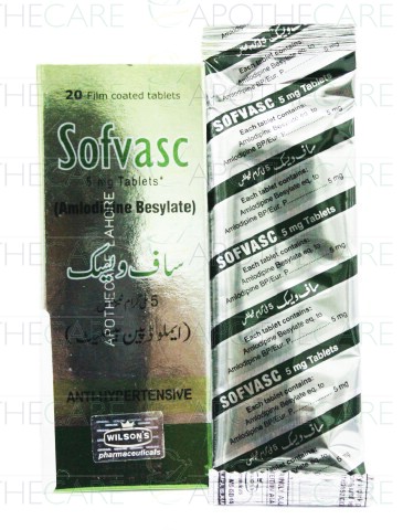 Product Name: Sofvasc Tab 5mg 1x20'sProduct Form: TabletsPack Size: 1x20'sMarketed By: WILSON'S PHARMACEUTICALSGeneric Category: Anti-HypertensiveIngredients: Amlodipine Besylate