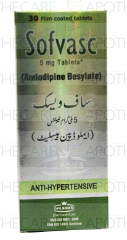 Product Name: Sofvasc Tab 5mg 1x30'sProduct Form: TabletsPack Size: 1x30'sMarketed By: Wilson's PharmaceuticalsGeneric Category: Anti-HypertensiveIngredients: Amlodipine as Besylate 5 mg