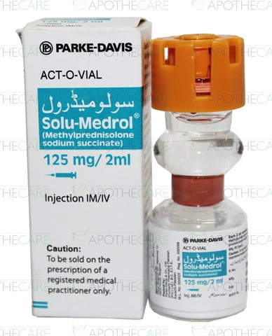 Product Name: Solu Medrol Inj 125mg 1VialProduct Form: InjectionPack Size: 1VialMarketed By: PFIZER PAKISTANGeneric Category: CorticosteroidsIngredients: Methyl prednisolone sodium succinate