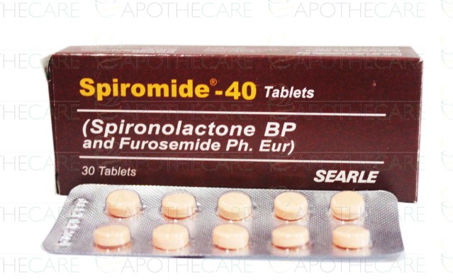 Product Form: TabletsPack Size: 10'sMarketed By: Searle Pakistan LimitedGeneric Category: DiureticsIngredients: Furosemide 40mg, Spironolactone 50mg