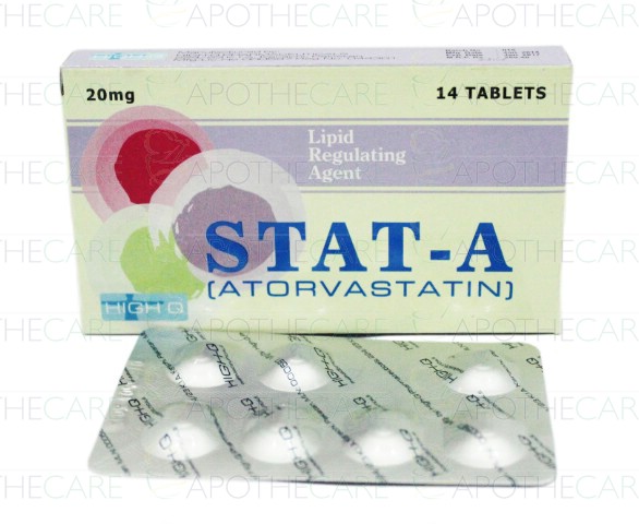 Product Name: Stat-A Tab 20mg 14'sProduct Form: TabletsPack Size: 14'sMarketed By: High Q PHARMACEUTICALSGeneric Category: StatinsIngredients: Atorvastatin