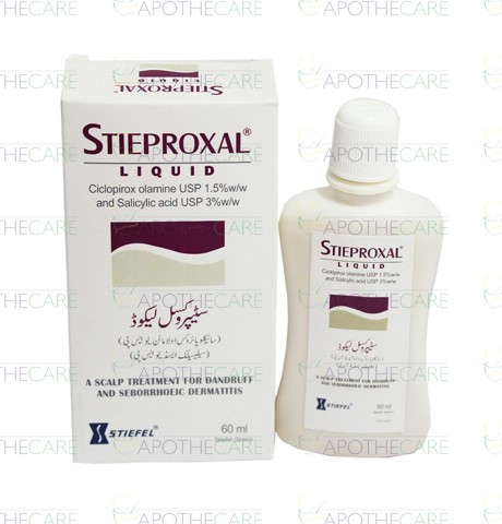 Product Name: Stieproxal Liq 60mlProduct Form: LiquidPack Size: 60mlMarketed By: GLAXOSMITHKLINE Generic Category: Anti-FungalIngredients: Ciclopirox Olamine 1.5%, Salicylic Acid 3%