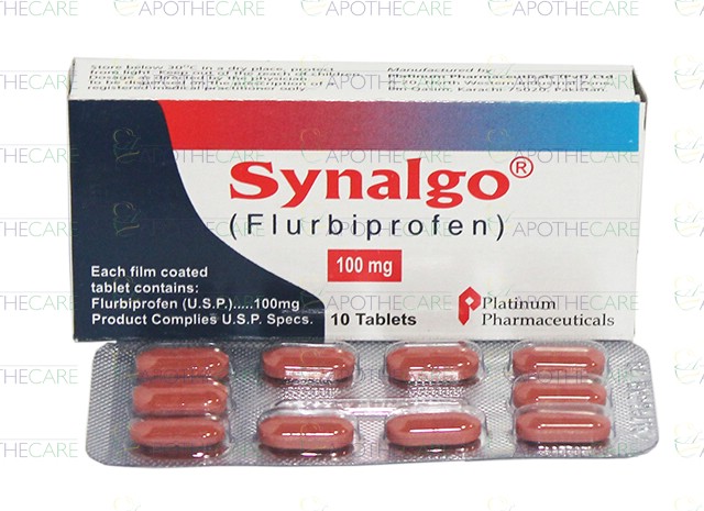 Product Name: Synalgo Tab 100mg 10'sProduct Form: TabletsPack Size: 10'sMarketed By: Platinum Pharmaceuticals (Pvt) LtdGeneric Category: NSAIDIngredients: Flurbiprofen