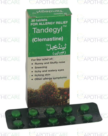 Product Name: Tandegyl Tab 1mg 30'sProduct Form: Tablets Pack Size: 30's Generic Category: Anti-HistamineIngredients: Clemastine