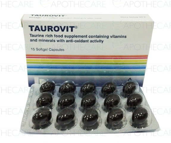 Product Name: Taurovit Softgel Cap 15'sProduct Form: Softgel CapsulesPack Size: 15'sMarketed By: Angelini Pharmaceuticals (Pvt) Ltd.Generic Category: Vitamins and mineralsIngredients: Taurine , Vitamins & Minerals