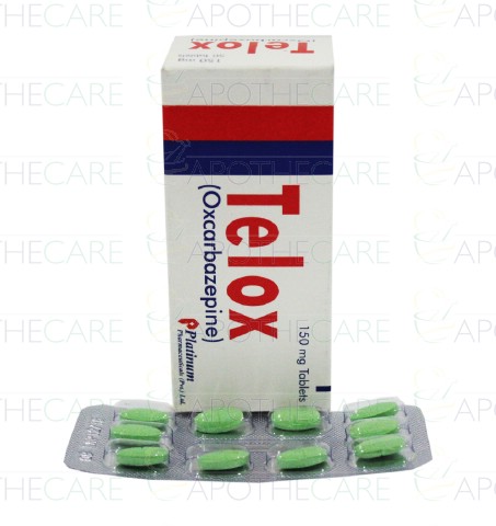 Product Name: Telox Tab 150mg 5x10'sProduct Form: TabletPack Size: 5x10'sMarketed By: Platinum Pharmaceuticals (Pvt) LtdGeneric Category: ANTI-EPILEPTIC Ingredients: Oxcarbazepine