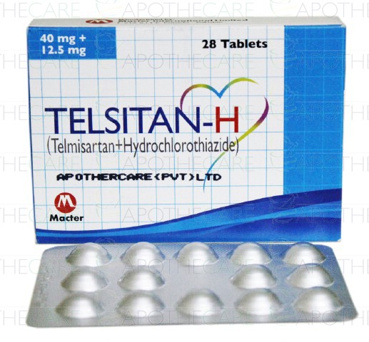 Product Name: Telsitan-H Tab 40mg/12.5mg 28'sProduct Form: TabletsPack Size: 28'sMarketed By: MACTER INTERNATIONAL (PVT) LTD Generic Category: Anti-HypertensiveIngredients: Telmisartan 40mg , Hydrochlorothiazide 12.5mg