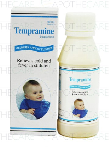Product Name: Tempramine Susp 60mlProduct Form: SuspensionPack Size: 60mlMarketed By: Woodward Pakistan (Pvt) Ltd Generic Category: Cold preparation without Anti-infectivesIngredients: Each 5ml contains: Paracetamol 120 mg, Chlorpheniramine Maleate 1mg