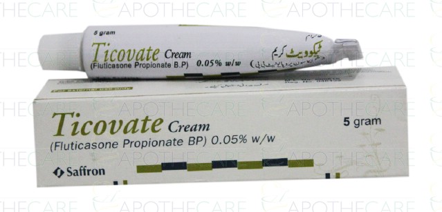 Product Name: Ticovate Cream 0.05% 5gProduct Form: CreamPack Size: 5gMarketed By: Saffron Pharmaceuticals (Pvt) Ltd.Generic Category: CorticosteroidIngredients: Fluticasone Propionate