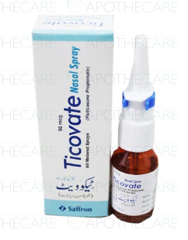 Product Name: Ticovate Nasal Spray 50mcg 1'sProduct Form: SprayPack Size: 1'sMarketed By: Saffron Pharmaceuticals (Pvt.) LimitedGeneric Category: CorticosteroidIngredients: Fluticasone Propionate