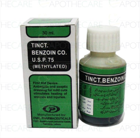 Product Name: Tincture Benzoinco 30ml (Pack of 10’s)Product Form: LiquidPack Size: 30mlMarketed By: Oval PharmaGeneric Category: antiseptic