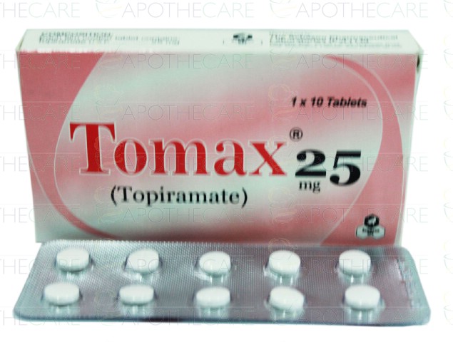 Product Name: Tomax Tab 25mg 1x10'sProduct Form: TabletsPack Size: 1x10'sMarketed By: Schazoo Pharmaceuticals (Pvt) LtdGeneric Category: Anti-EpilepticIngredients: Topiramate