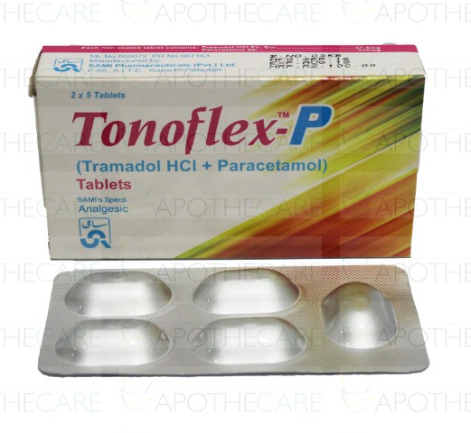 Product Name: Tonoflex-P Tab 37.5mg/325mg 20'sProduct Form: TabletsPack Size: 20'sMarketed By: SAMI PHARMACEUTICALSGeneric Category: OPIOID ANALGESICIngredients: Tramadol HCl 37.5mg, Paracetamol 325mg