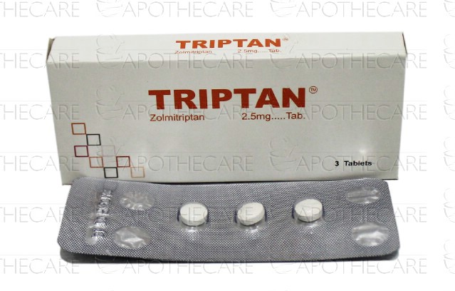 Product Name: Triptan Tab 2.5mg 3'sProduct Form: TabletsPack Size: 3'sMarketed By: VALOR PHARMACEUTICALSGeneric Category: Anti-MigraineIngredients: Zolmitriptan