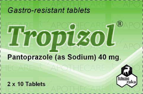 Product Name: TROPIZOLE Tab 40mg 2x10'sProduct Form: TabletsPack Size: 2x10'sMarketed By: SCHAZOO ZAKA (PVT) LTDGeneric Category: ANTI-ULCERANTIngredients: Pantoprazole Sodium