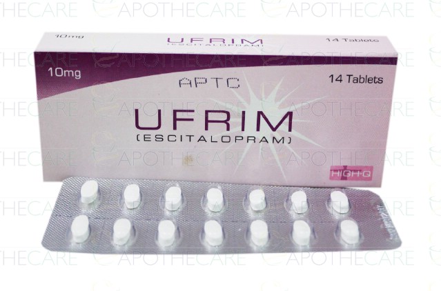 Product Name: Ufrim Tab 10mg 14'sProduct Form: TabletsPack Size: 14'sMarketed By: High Q PHARMACEUTICALSGeneric Category: Anti-DepressantIngredients: Escitalopram