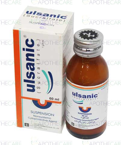 Product Name: Ulsanic Susp 1gm/5ml 60mlProduct Form: SuspensionPack Size: 60mlMarketed By: HIGHNOON LABORATORIES LTD.Generic Category: Gastric Mucosal ProtectantIngredients: Sucralfate