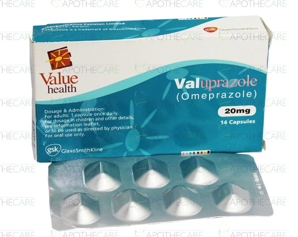 Product Name: Valuprazole Cap 20mg 14'sProduct Form: CapsulePack Size: 14'sMarketed By: GLAXOSMITHKLINE Generic Category: Anti-Ulcerant Ingredients: Omeprazole