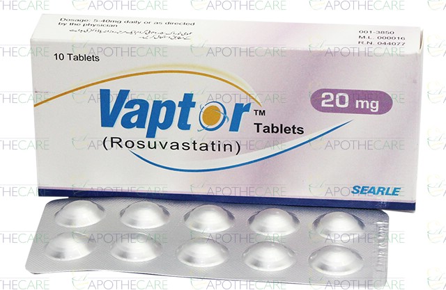 Product Name: VAPTOR Tab 20mg 10'sProduct Form: TabletsPack Size: 10'sMarketed By: SEARLE PAKISTAN Generic Category: STATINSIngredients: Rosuvastatin