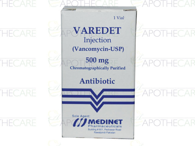 Product Name: Varedet Inj 500mg 1VialProduct Form: InjectionPack Size: 1VialMarketed By: Medinet (Pvt) LtdGeneric Category: Anti-BacterialsIngredients: Vancomycin