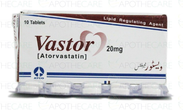 Product Name: VASTOR Tab 20mg 1x10'sProduct Form: TabletsPack Size: 1x10'sMarketed By: ATCO LABORATORIES (PVT) LTDGeneric Category: StatinsIngredients: Atorvastatin