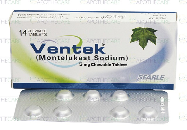 Product Name: VENTEK Tab 5mg 14'sProduct Form: TabletsPack Size: 14'sMarketed By: SEARLE PAKISTAN Generic Category: Anti-LeukotrieneIngredients: Montelukast Sodium