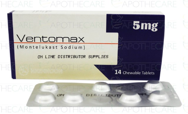 Product Name: Ventomax Tab 5mg 14'sProduct Form: Chewable TabletPack Size: 14'sMarketed By: HIGHNOON LABORATORIES LTD.Generic Category: ANTI-LEUKOTRIENEIngredients: MONTELUKAST SODIUM