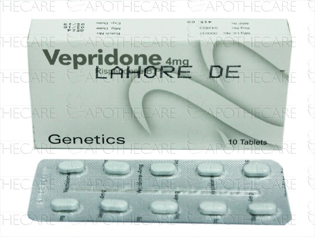 Product Name: Vepridone Tab 4mg 10'sProduct Form: TabletPack Size: 10'sMarketed By: Genetics PharmaceuticalsGeneric Category: PsychosisIngredients: Risperidone