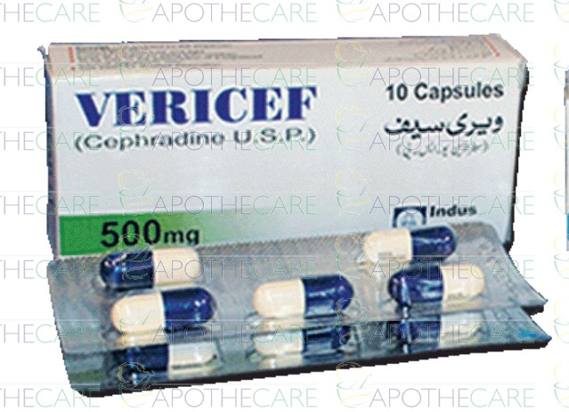 Product Name: VERICEF Cap 500mg 10'sProduct Form: CapsulesPack Size: 10'sMarketed By: INDUS PHARMA (PVT) LTDGeneric Category: CEPHALOSPORIN ANTIBIOTICIngredients: Cephradine