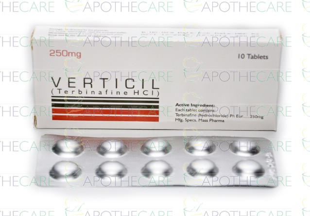 Product Name: Verticil Tab 250mg 10'sProduct Form: TabletsPack Size: 10'sMarketed By: PHARMA HEALTH PAKISTAN (PVT.) LTDGeneric Category: Anti-fungalIngredients: Terbinafine HCl
