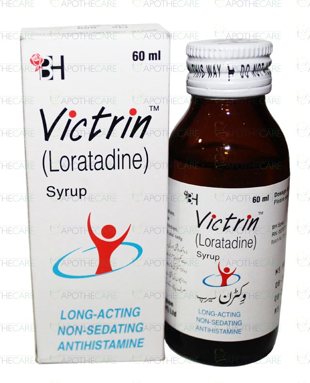 Product Name: Victrin Syp 5mg/5ml 60mlProduct Form: SyrupPack Size: 60mlMarketed By: BARRETT HODGSON PAKISTAN (PVT) LTDGeneric Category: Anti-Histamine Ingredients: Loratadine