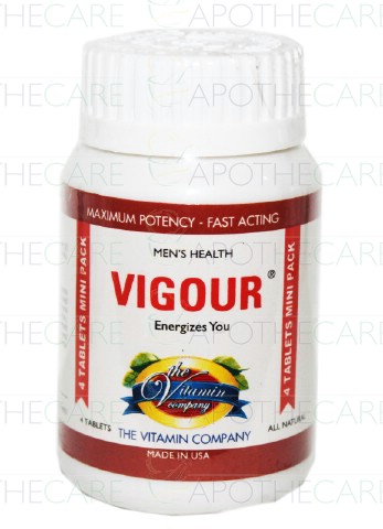 Product Name: Vigour Mini Pack Tab 4'sProduct Form: TabletsPack Size: 4'sMarketed By: The Vitamin CompanyGeneric Category: Nutritional Supplement Ingredients: Yohimbe Bark, Maca Root, Tribulus, Horny goat, Damiana